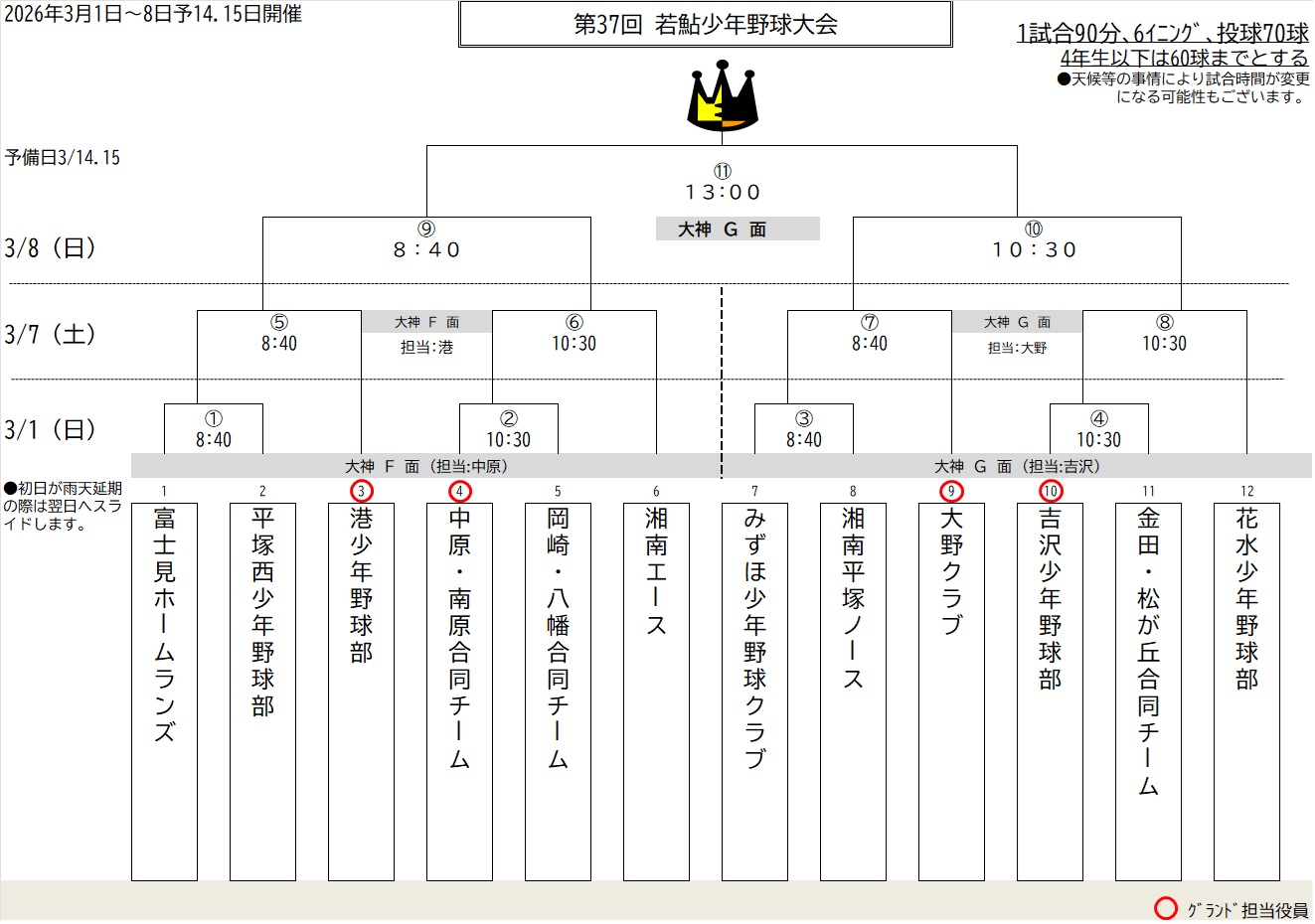 組合せが決まりましたらこちらに発表致します。(2月中旬)